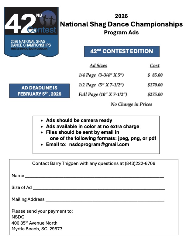 Advertise your business or congratulate a contestant buy buying an ad in our 2026 glossy program which is sold during Finals in March. Click here for 2026 ad form